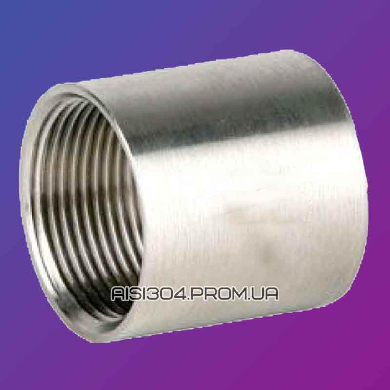 Муфта пряма нержавіюча – деталь різьбового фітинга, що має внутрішню різьбу по всій внутрішній поверхні виробу. Найчастіше використовується для приєднання деталей з зовнішньою різьбою (кран кульовий, ніпель, зганяння). Виготовляється за міжнародним стандартом ISO і розрахована на тиск до 2 Мпа (20 бар). А рекомендований температурний режим від – 20 °С до +220°С.